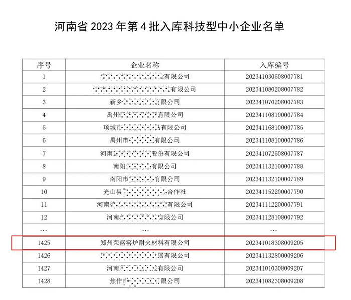 | PRODUCT喜訊!榮盛耐材成功入庫「科技型中小企業(yè)」