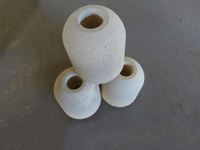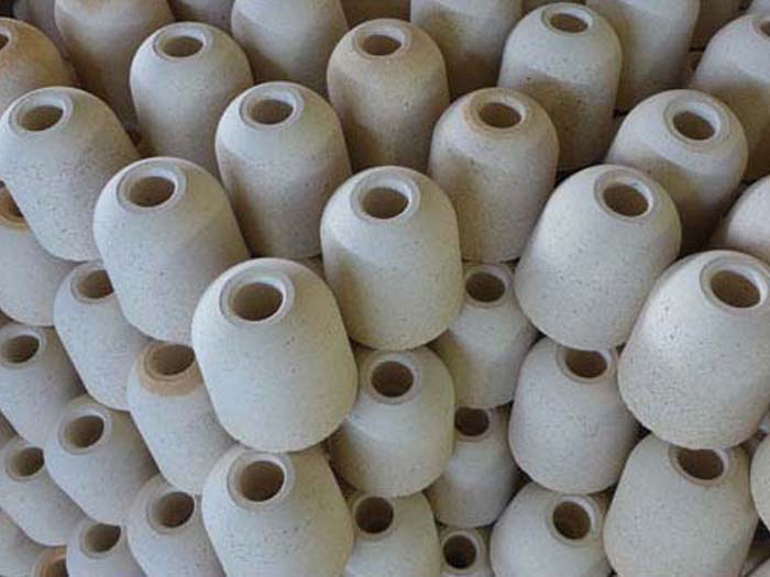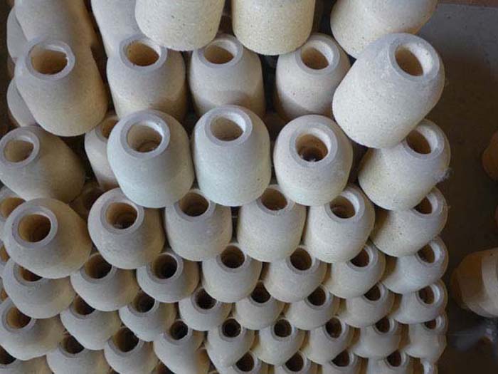 塞頭磚位于塞棒下端和水口磚呈嚴(yán)密配合的耐火材料質(zhì)磚。不澆注時它堵住水口保證不漏鋼。澆注時提高塞棒,使塞頭磚和水口磚產(chǎn)生間隙,鋼水從水口流出?刂迫舻母叩停烧{(diào)節(jié)鋼水的流出量。塞頭磚和棒芯間可用螺紋或銷子固定。塞頭磚可以是黏土質(zhì)、不燒高鋁質(zhì)及焦油浸漬的不燒高鋁質(zhì)磚。